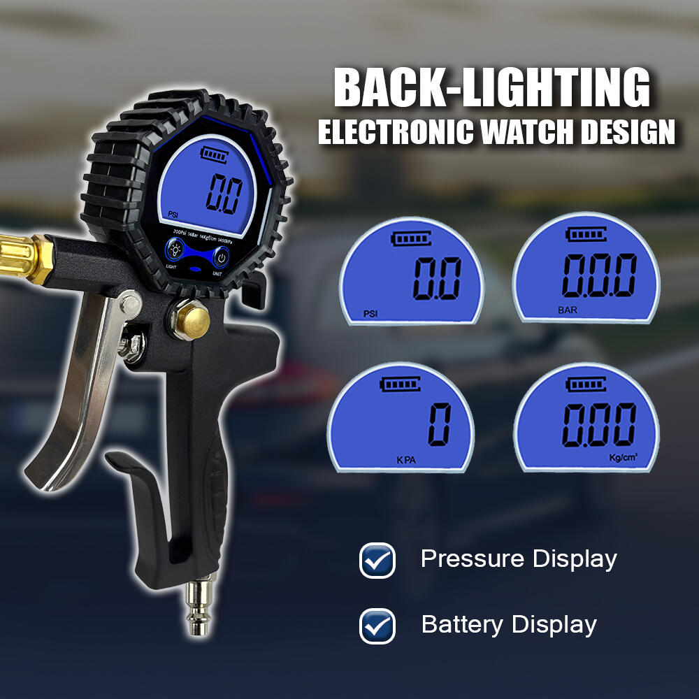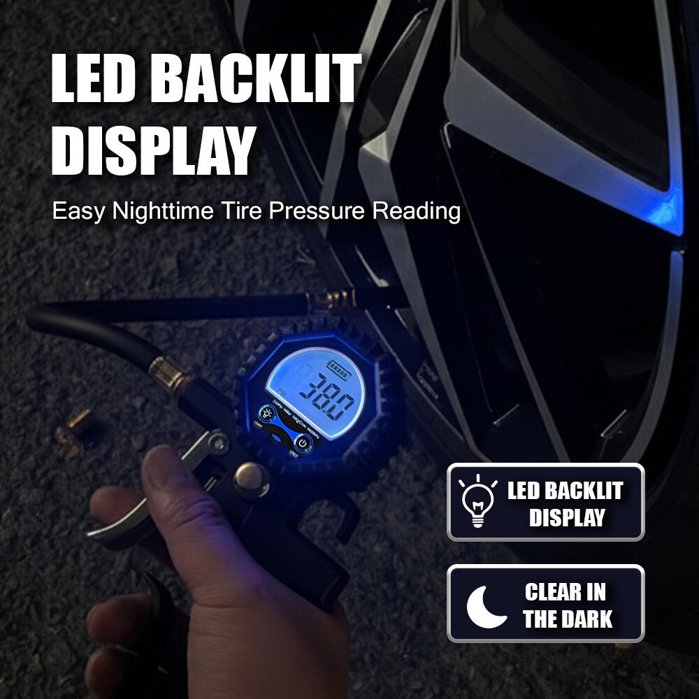 Enjoy clear, easy-to-read pressure values even in dim lighting. The backlit LED screen enhances visibility during night use or in shaded workspaces.